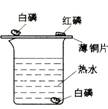 在烧杯上盖一片薄铜片,铜片上一端放一小堆干燥的红磷,另一
