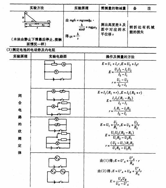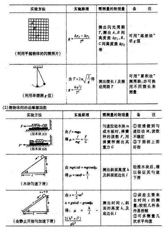 (一)设计实验方法 下面是测定“重力加速度”;“测定物体间动摩擦因素”及“测量干电池的电动势和内电阻”的几种方案,供参考:
