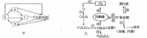 (3)生态系统中物质循环随着能量流动,若甲图补充D→B,假设B获得的总能量为a,其中由A供能的比例为x,则按最低传递效率计算,D同化的总能量(y)与x的函数关系式为 。