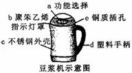 豆浆机是制作营养早餐的好帮手,根据图示,下列说法中错误的是