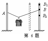 6.如图所示,晾晒衣服的绳子轻且光滑,悬挂衣服的衣架的挂钩也是光滑的,轻绳两端分别固定在两根竖直杆上的A、B两点,衣服处于静止状态.如果保持绳子A端位置不变,将B端分别移动到不同的位置。下列判断正确的是 ( )