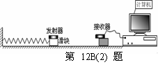 (2)(4分)某实验小组利用数字实验系统探究弹簧振子的运动规律,装置如图所示,水平光滑导轨上的滑块与轻弹簧组成弹簧振子,滑块上固定有传感器的发射器.把弹簧拉长5 cm后由静止释放,滑块开始振动.他们分析位移-时间图象后发现,滑块的运动是简谐运动,滑块从最右端运动到最左端所用时间为1s,则弹簧振子的振动频率为 Hz;以释放的瞬时为初始时刻、向左为正方向,则滑块运动的表达式为x= cm.