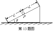 (15分)如图所示,固定的绝缘斜面长度为2L、倾角为θ,上、下端垂直固定有挡板,质量为m、电荷量为+q的小滑块,与斜面间的动摩擦因数为μ,最大静摩擦力与滑动摩擦力大小相等,滑块所受的摩擦力小于其重力沿斜面的分力,滑块每次与挡板相碰均无机械能损失.现将滑块由斜面中点P由静止释放,试求: