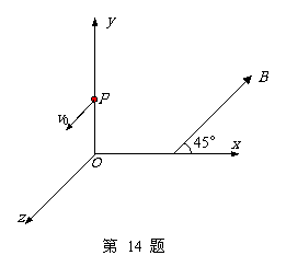 14.(16分)如图所示,在同时存在匀强电场和匀强磁场的空间中取正交坐标系Oxyz(x轴正方向水平向右,y轴正方向竖直向上)。匀强磁场方向与Oxy平面平行,且与x轴的夹角为