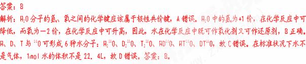 C.氢的三种同位素H、D、T与16O只能形成三种水分子