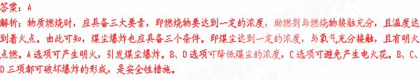 3.新华网2009年2月22日电 截至22日15时,山西屯兰煤矿事故已造成73人遇难。据事故抢险指挥部介绍,现已初步查明,事故原因为井下局部瓦斯爆炸。煤尘爆炸的条件与物质燃烧的条件相类似,请利用燃烧的条件判断,下列哪种情况会促进煤尘爆炸( )