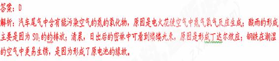 A.汽车尾气中含有能污染空气的氮的氧化物,原因是汽油燃烧不充分