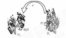 12.2009年,科学家们发明了一种能够给电子设备提供动力的生物燃料电池。该电池包括两个涂覆着酶的电极,它们处于充满空气和少量氢气的玻璃槽中。由于气体可以混合从而省去了昂贵的燃料隔离膜,其工作原理如图所示。下列说法正确的是