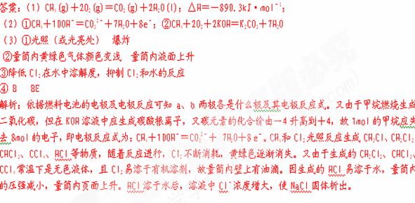 (2)美国阿波罗宇宙飞船上使用的氢氧燃料电池是一种新型的电池,氢气虽然使用方便,却受到价格和来源的限制。常用的燃料往往是某些碳氢化合物,如甲烷(天然气)、汽油等。电池的构造如图所示:两个电极均由多孔碳制成,通入的气体由孔隙中流出,并从电极表面放出。