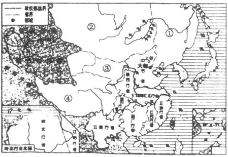 17. 下图为《元朝疆域图》,其中宣政院管辖的地区是 ( )