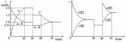 2C(g)。达到平衡后,只改变反应的一个条件,测得容器中各物质的浓度、反应速率随时间变化如下所示: