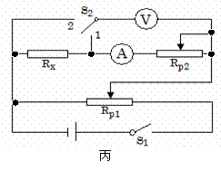 无论是用图甲或图乙测量,都不可避免地产生由电表内阻引起的测量误差,有一个研究性学习小组设计了以下的实验方案,用以避免电表内阻引起的系统误差。该方案是利用如图丙所示的电路进行测量,主要实验步骤如下: