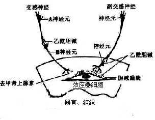 (6分)右图表示某内脏器官受交感神经和副交感神经调节的示意图。请根据右图回答问题。