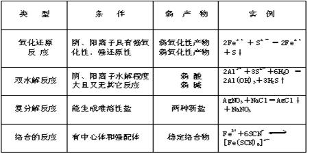 ①复分解 ②双水解 ③氧化-还原 ④络合反应