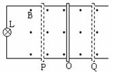 如图所示,接有灯泡L的平行金属导轨水平放置在匀强磁场中,一导体杆与两导轨良好接触并做往复运动,其运动情况与弹簧振子做简谐运动的情况相同。图中O位置对应于弹簧振子的平衡位置,P、Q两位置对应于弹簧振子的最大位移处。若两导轨的电阻不计,则( )
