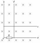 .如图,在匀强磁场中固定放置一根串接一电阻R的直角形金属导轨aob(在纸面内),磁场方向垂直纸面朝里,另有两根金属导轨c、d分别平行于oa、ob放置。保持导轨之间接触良好,金属导轨的电阻不计。现经历以下四个过程:①以速率v移动d,使它与ob的距离增大一倍;②再以速率v移动c,使它与oa的距离减小一半;③然后,再以速率2v移动c,使它回到原处;④最后以速率2v移动d,使它也回到原处。设上述四个过程中通过电阻R的电量的大小依次为Q1、Q2、Q3和Q4,则