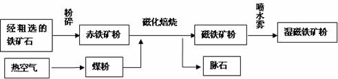 (1)经粗选的铁矿石粉碎的目的是 ;