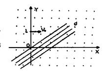 (20分)如图所示,整个XOY平面存在着垂直纸面向外的匀强磁场,其间有一宽度为d的斜向的、上下边界平行的匀强电场区域。电场方向