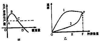 (3)下图甲中A点代表未放牧时草原中生产者的净生产量,则--点以后生态平