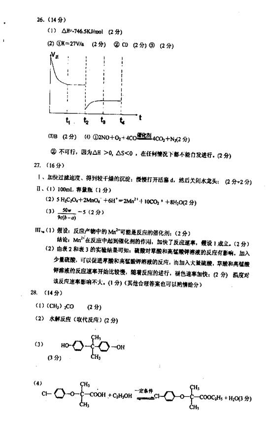 (2)在一定温度下,在一体积为V升的密闭容器中充入一定量的NO和CO。在tl时刻