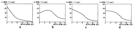 [例7]下图是“某城市不同时期人口密度与距市中心距离关系图”,读图回答⑴-⑶题。
