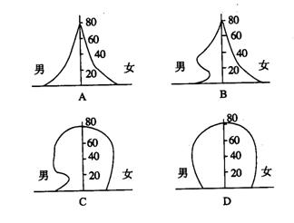 下面是某四国人口金字塔示意图。据此回答1-4题。