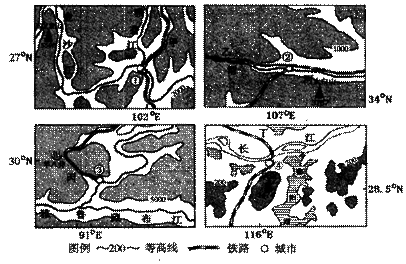 10、甲、乙、丙、丁分别是通过四个城市的铁路线。下列关于四条铁路线的叙述正确的是