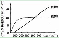B.在CO2交换速度等于0时,两种植物A和B仍有光合作用和呼吸作用![]()