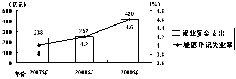 材料二:2009年12月,中央经济工作会议指出,要坚持更加积极的就业政策,努力扩大就业。引导和促进劳动密集型企业、中小企业、民营经济、各种服务业加快发展,积极鼓励和支持劳动者自主创业和自谋职业,鼓励高校毕业生到城乡基层、中西部地区、中小企业就业。各级政府要鼓励有实力的大企业创造更多智力密集型就业机会。