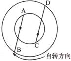 2.读右图(外面箭头表示地球自转方向),下列叙述正确的是( )![]()