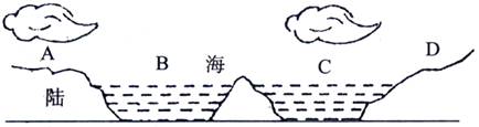 9.下图中A、B、C、D四地位于同一纬度,其昼夜温差最小的是( )