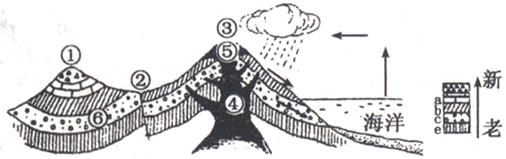 (2)在图中④、⑤、⑥三处的岩石类型,为沉积岩的是__________,在野外判断该类岩石的依据
