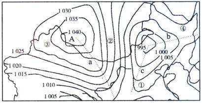 (2)图中虚线(a、b、c)附近易形成冷锋的是_________,b系统过境后的天气是____________