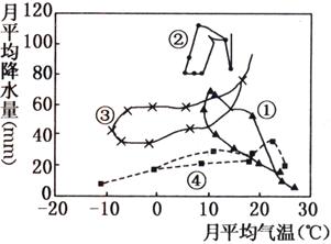 29.(12分)下图为“四地气候资料图”,读图完成下列问题。