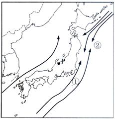 (10分)海雾大多是因为暖湿空气流经较冷表面(冷洋流)被冷却饱和而形成;冷、暖洋流交汇处往往具备这样的大气环流条件,很容易形成海雾。读日本附近海域洋流示意图,回答下列问题。