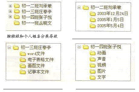 50.(1.5分)随着电脑的使用,电脑中存贮了大量信息资源,这就需要我们养成科学管理、有序存放信息的良好习惯。以下四种文件夹结构依次按“班级和个人姓名”、“ ”、“ ”、“ ”分类存放。