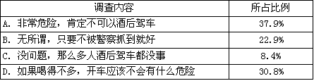 某研究小组就市民酒后驾车现象进行了相关内容的调查,并获得数据如下: