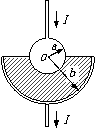 某个由导电介质制成的电阻截面如图所示。导电介质的电阻率为ρ、制成内、外半径分别为a和b的半球壳层形状(图中阴影部分),半径为a、电阻不计的球形电极被嵌入导电介质的球心为一个引出电极,在导电介质的外层球壳上镀上一层电阻不计的金属膜成为另外一个电极。设该电阻的阻值为R。下面给出R的四个表达式中只有一个是合理的,你可能不会求解R,但是你可以通过一定的物理分析,对下列表达式的合理性做出判断。根据你的判断,R的合理表达式应为