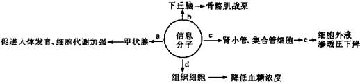 下图为人体内某些信息分子作用的示意图,a、b、c、d表示信息分子,据图分析,下列叙述错误的是 ( )