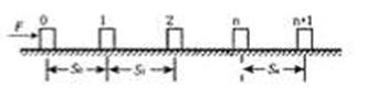 ,如图所示,现用一水平恒力F推动O物体向右运动,从而发生一系列碰撞,设碰及的每个物体都被粘在一起,则设置适当的