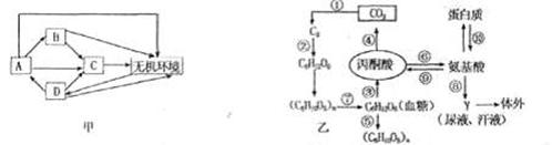 (3)生态系统中物质循环随着能量流动,若甲图补充D→B,假设B获得的总能量为a,其中由A供能的比例为x,则按最低传递效率计算,D同化的总能量(y)与x的函数关系式为 。