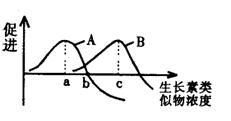 在农业生产中,用一定浓度的植物生长素类似物作为除草剂,可以除去单子叶农作物田间的双子叶杂草。下图表示生长素类似物浓度对两类植物生长的影响,则A、B曲线分别表示何类植物以及选用生长素类似物的浓度应当是