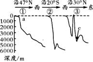 读大陆边缘向洋盆过渡的地形剖面示意图,回答8、9题。注意是大陆的东岸?西岸?![]()