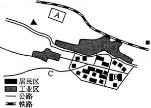 2)从图中可以看出,该市工业区位除考虑风向外,还具有两个特点:(4分)