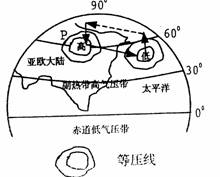 下图为亚欧大陆东部某季节大气运动图,读图回答16-17题。