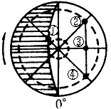 读地球俯视图(阴影部分为夜)。该飞机在②-③-④