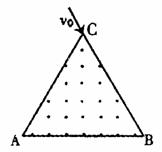 H)的比荷(电荷量与质量的比)为k。如图所示,一个氘核(21H)以速度v0沿CB边射入边长为l的等边三角形的匀强磁场区域中,为使氘核能从AB边穿出磁场,磁感应强度B的取值范围为 ( )