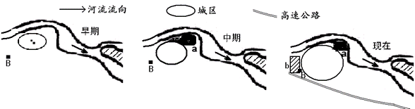 ⑶试分析b工业区形成的区位因素。B地早期位于A城的远郊,在不同时期,B地土地的利用方式存在很大差异。试运用区位原理,分析、回答下列问题。
