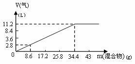 在100mL NaOH溶液中加入NH4NO3和(NH4)2SO4固体混合物,加热充分反应,加入的混合物的质量和产生的气体体积(标准状况)关系如图。当V(NaOH)=140mL时,固体混合物的质量是51.6g,充分反应后,生成气体的体积是(标准状况)