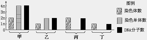 (2)下图中甲-丁为某动物(染色体数=2n)睾丸中细胞分裂不同时期的染色体数、染色单体数和DNA分子数的比例图,关于此图叙述中错误的是